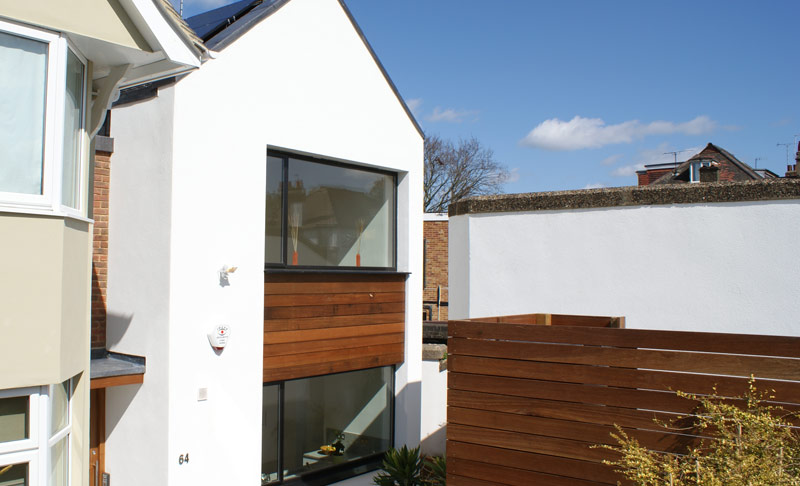 In order to meet the Code for Sustainable Homes standards for new builds, the house was fitted with solar panels, water recycling, and other Eco-friendly accessories.