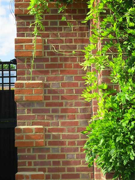 Original yellow London stock used for the garden walls blend well with the Monsoon grey' sandstone flags.
